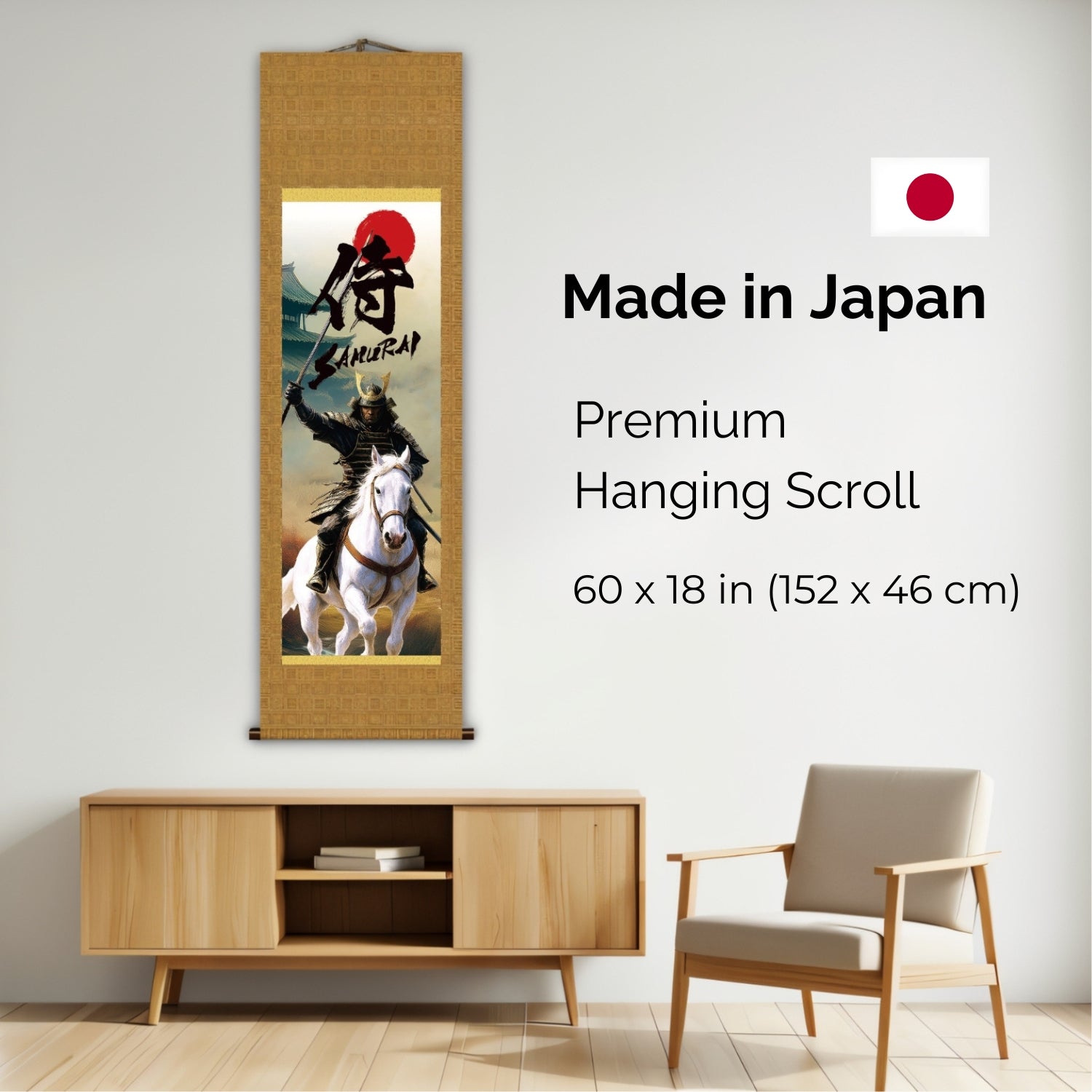 Kakemono mural samouraï japonais – Samouraï monté avec épée sur cheval blanc