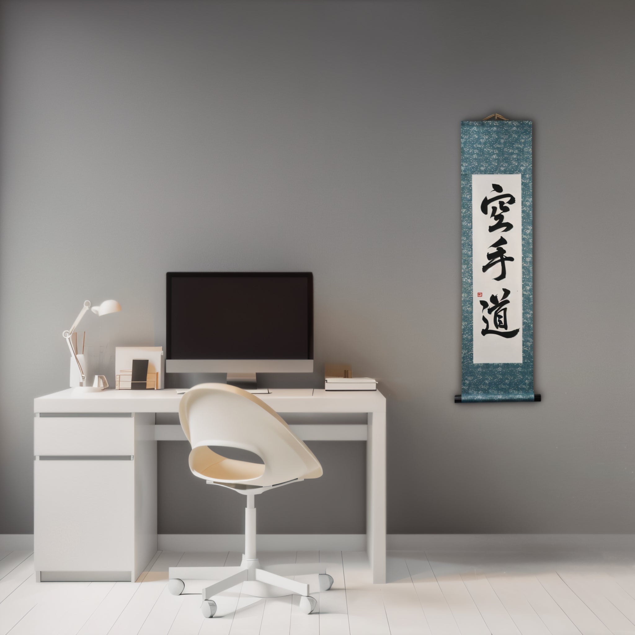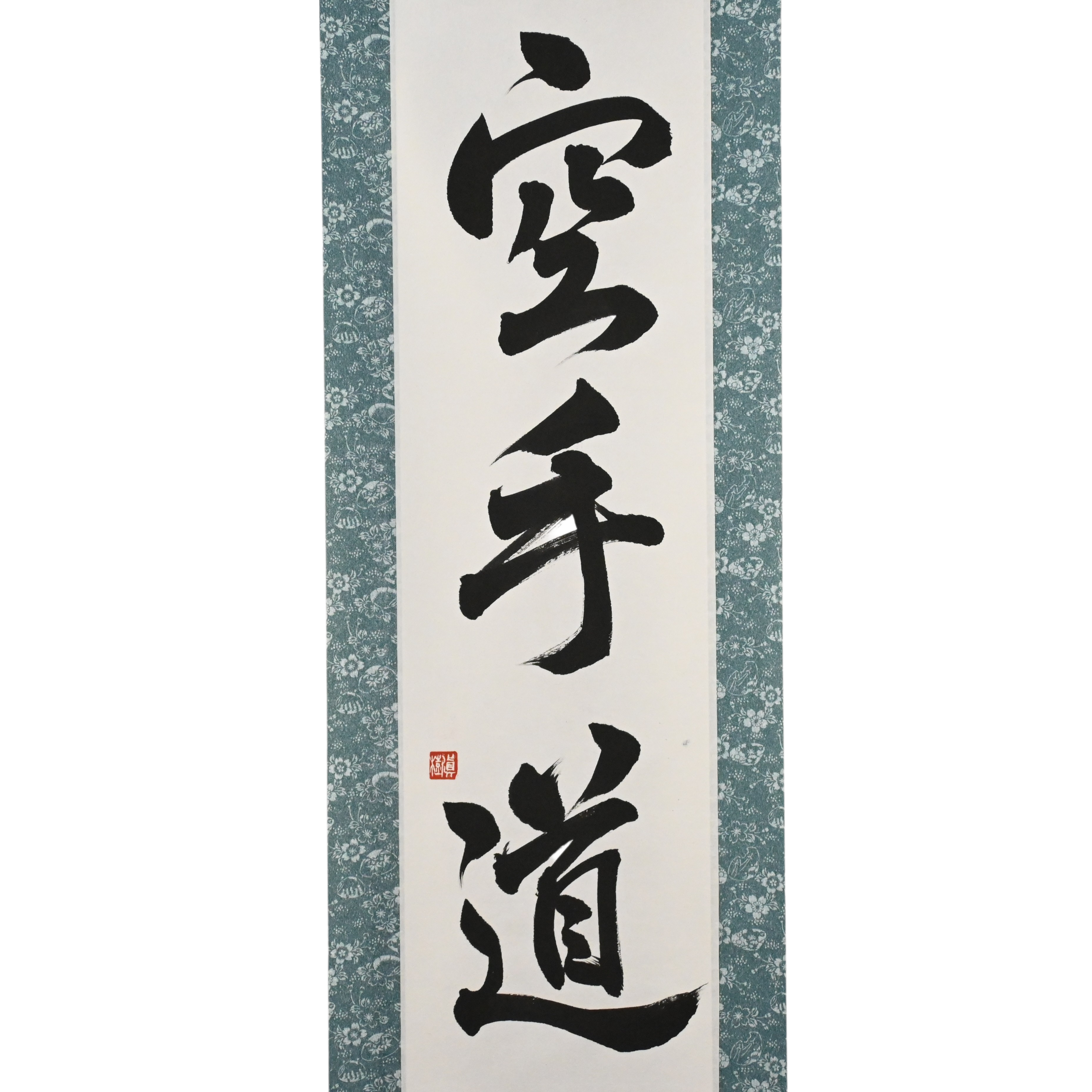 Ce rouleau de calligraphie présente la puissante phrase 空手道 (Karate-do) — non seulement un art martial, mais un voyage de toute une vie fait de discipline, de respect et de force intérieure.