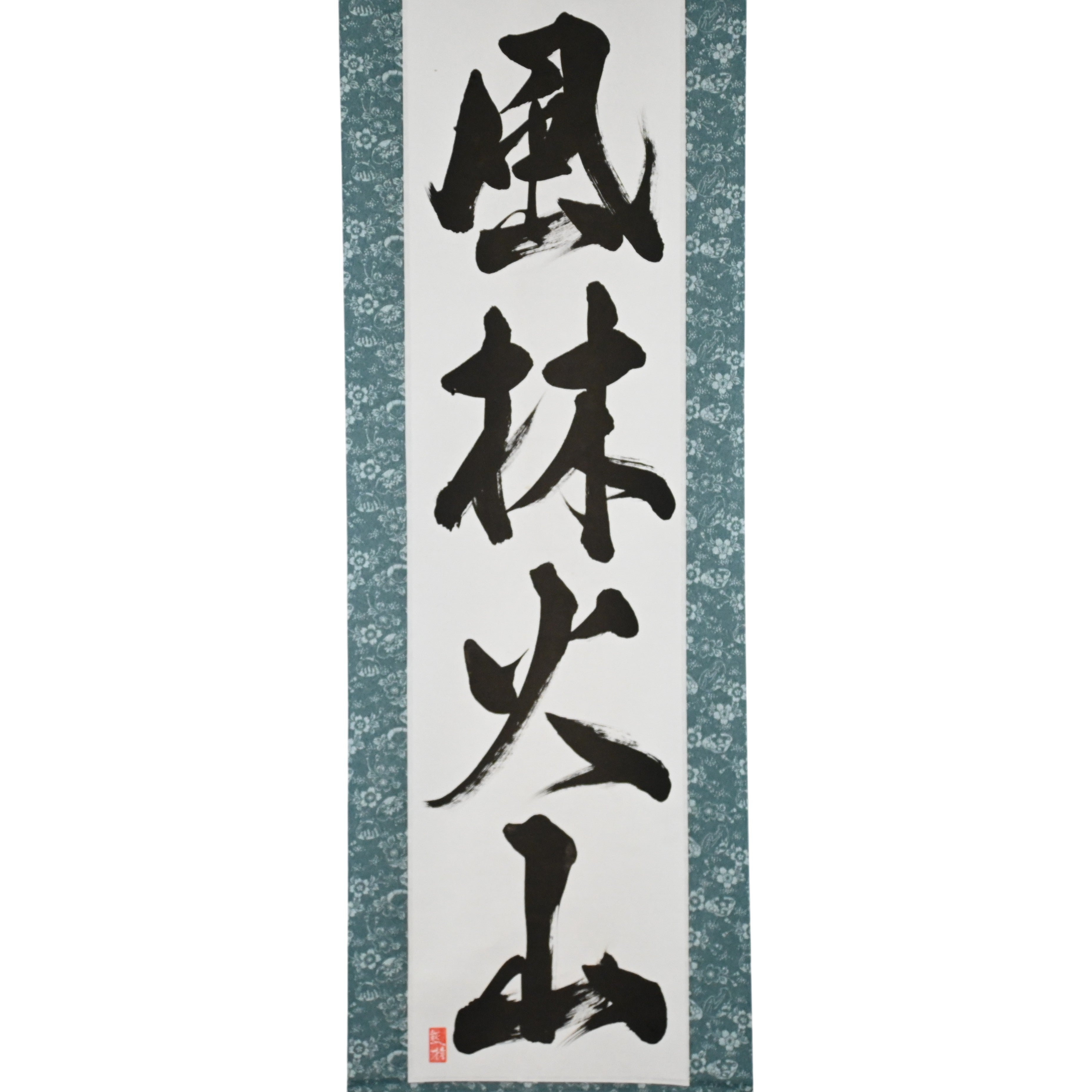 Découvrez l'esprit audacieux du Samouraï avec ce puissant rouleau de calligraphie japonaise présentant 風林火山 (Fûrinkazan) — une phrase légendaire immortalisée par le grand seigneur de guerre Takeda Shingen (武田信玄), l'une des figures les plus emblématiques de l'époque Sengoku (XVIe siècle) au Japon.
