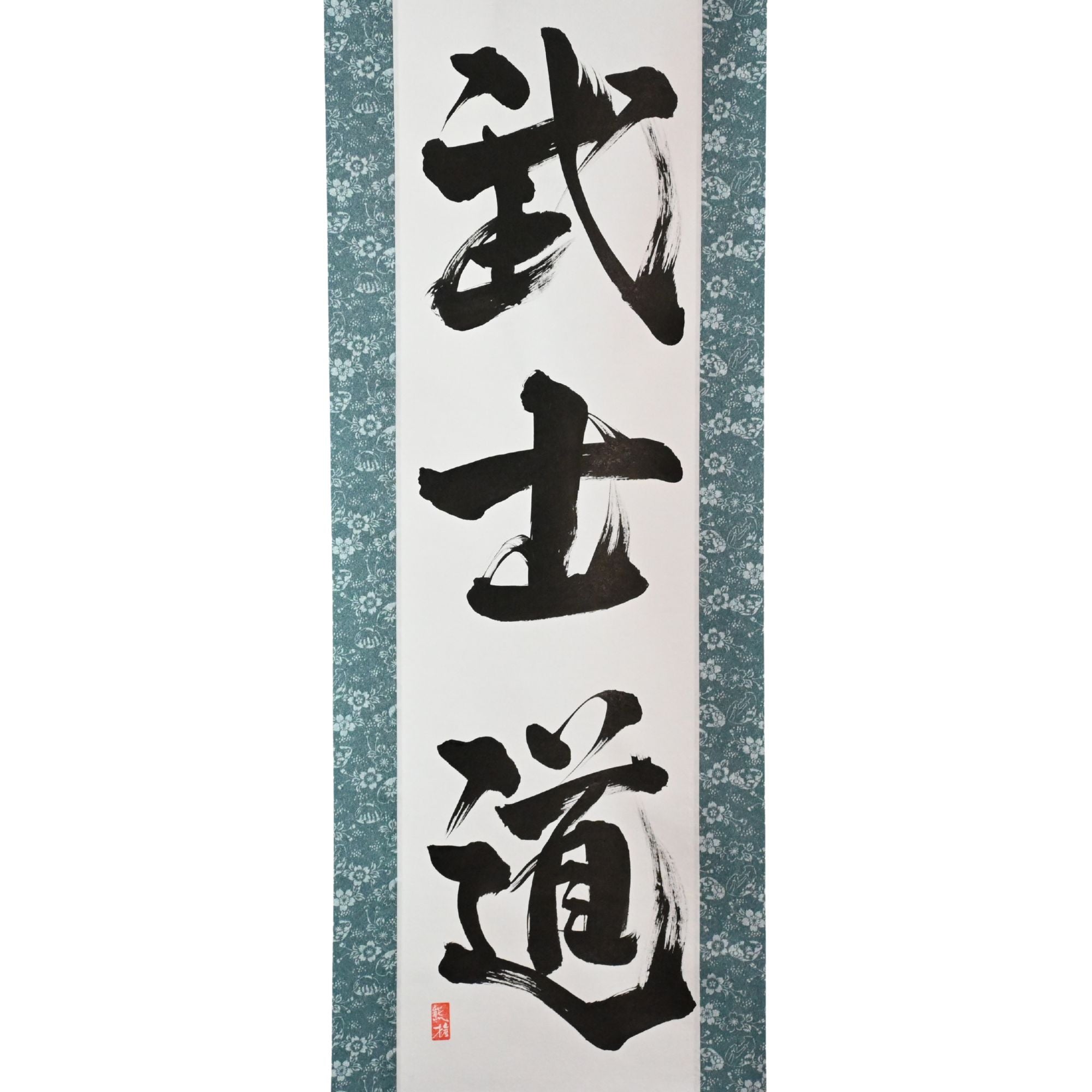 This calligraphy scroll features the powerful word 武士道 (Bushidō), which embodies the way of the Samurai.